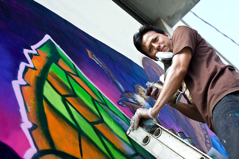 I had the pleasure of watching some very talented artists as they completed their 808 Urban mural depicting the Hawaiian god Kanaloa as he reigns over the disintegration of our seas. Photo buddy Erick joined me too and got some awesome pics on his blog.